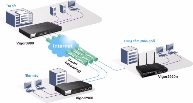 | WAN | - Multi-WAN (Ethernet / 3.5G) - Load Balance theo chính sách - WAN Failover - Giao thức: DHCP Client, Static IP, PPPoE, PPTP, BPA, L2TP |